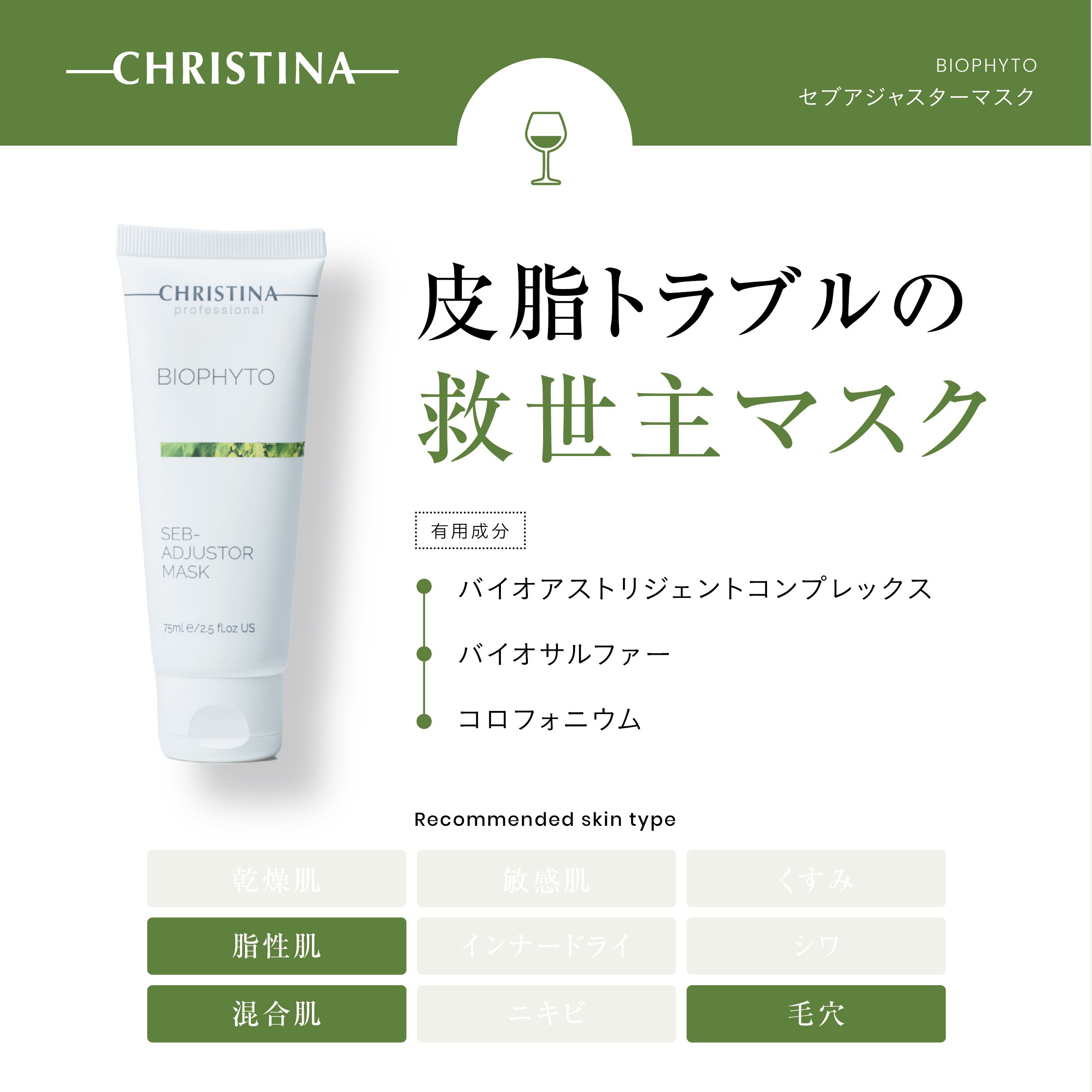 余分な皮脂を取り除くことで、テカリを抑え開いた毛穴を収縮させます。また、最適な水分バランスで皮膚に柔軟性を持たせます。